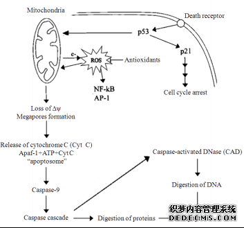 Fig.2 Schematic representation of apoptosis which is mediated by ROS generated by mitochondria(modified from reference [50])